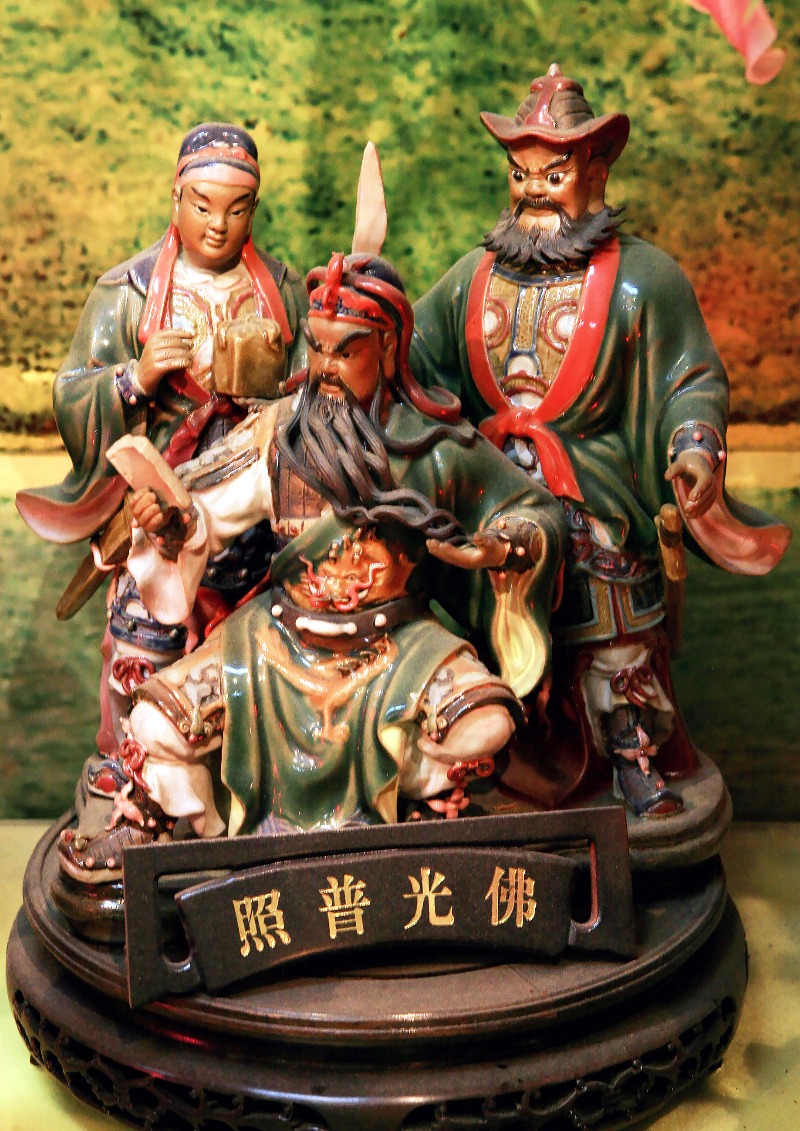 ● 師父答:不是三位关帝菩薩,关帝菩薩旁边的一位叫周仓菩薩,是当时关帝菩薩的助手;还有一位是关帝菩薩的孩子,叫关平。关平菩薩、关帝菩薩、周仓菩薩(明白了,那我们可不可以拍下来,然后也供奉起来?)当然可以,这是个整体,现在都是护法、大护法,供三尊非常好。